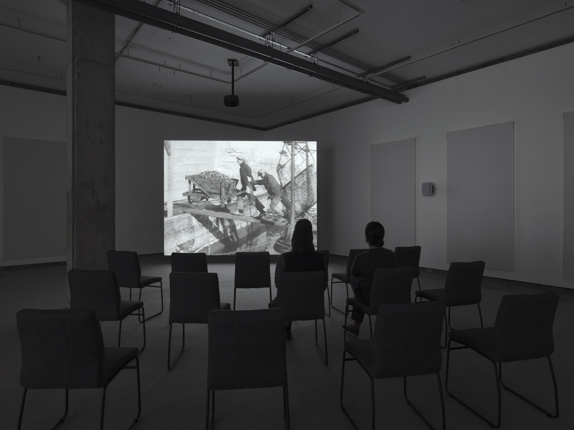 Footsteps (2022) is a 97-minute video installation made by Fiona Tan at the invitation of Amsterdam’s Eye Filmmuseum. The work combines archival film footage from the museum’s collection with a voiceover of letters written to the artist by her father while she was a student in the late 1980s. Tan added a soundtrack to the film material that reflects the action and events taking place, bringing the century-old footage to life. As we listen to the artist's father (voiced by actor Ian Henderson) write about the fall of the Soviet Union, civil unrest in China, and the everyday lives of the artist’s relatives in Australia, we watch men and women toil the land and harvest the sea, we see cows in the field and old men smoking pipes, sailboats moving across the horizon, and the emergence of industry and urbanisation.