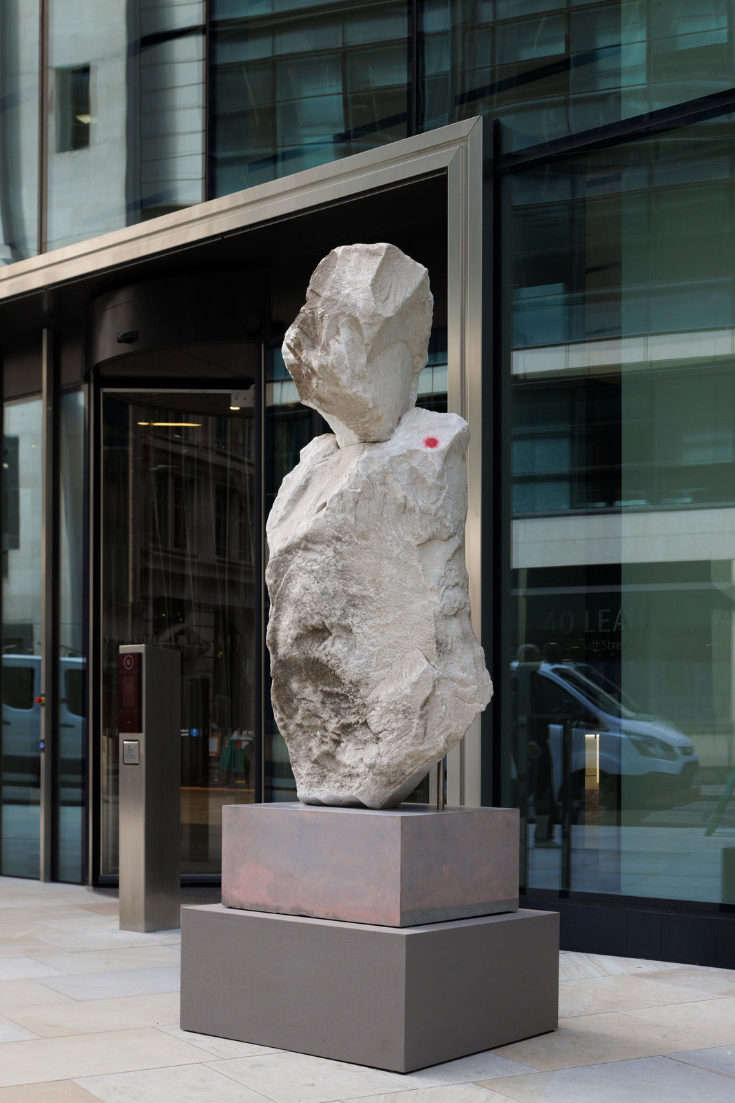 One work positions a bronze head directly on a large piece of Michelangelo marble, found by the artist in a stone yard in the Italian town of Pietrasanta, while the other is made simply from two roughly hewn pieces of marble referencing the work of Brâncusi.
